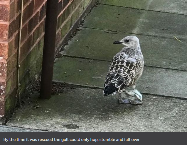 [BBC] Coronavirus: Gull caught in PPE face mask in Chelmsford 2020-JULY-20