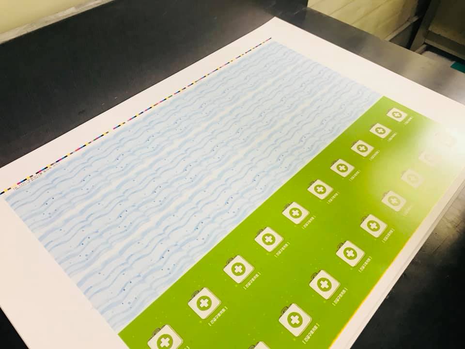앞판을 한 번 찍고 그 종이를 인쇄기에 다시 넣고 뒷판을 찍는데요. 앞판이 기계 4대를 한 번씩 지나가면서 청색 홍색 황색 검정색 이렇게 인쇄가 되는 겁니다.