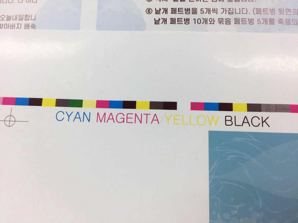 인쇄소에는 커다란 기계가 5대 쭉있습니다. 각각 CMYK 4가지 색을 넣습니다. 그리고 나머지 한대는 비상시에 쓰는 겁니다.