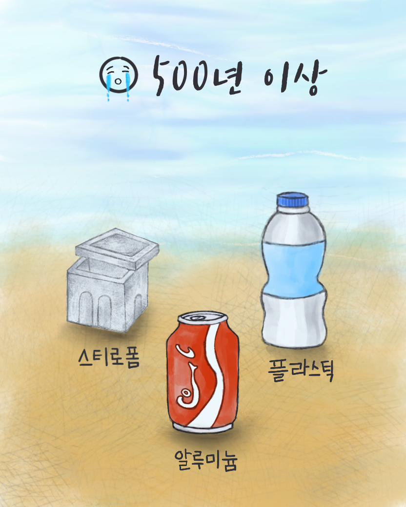 플라스틱은 자연으로 돌아가려면 무려 500년 이상이 걸린다고 합니다.